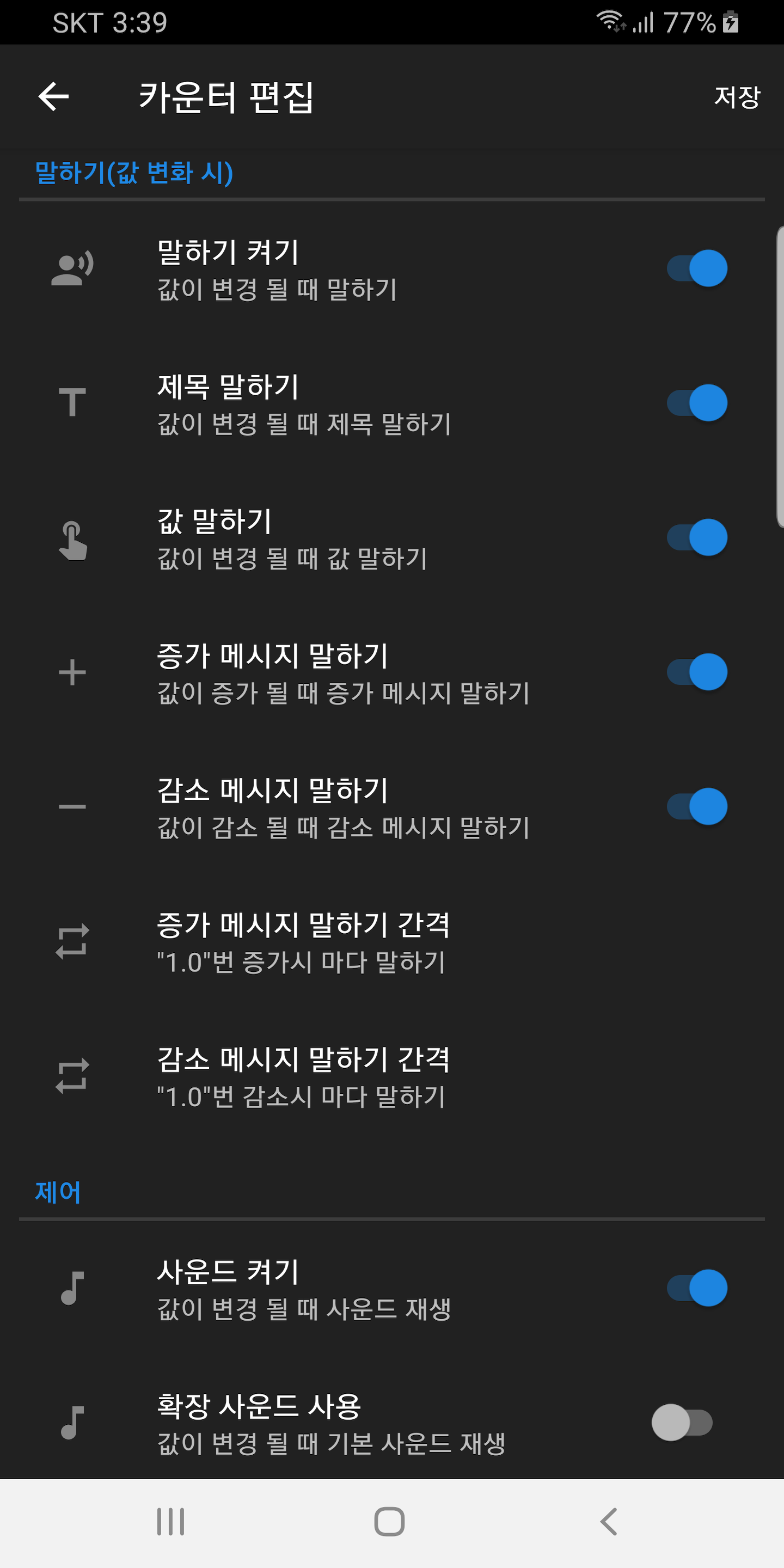 - 증가/감소 말하기 간격(5, 10번... 마다 말하기등)