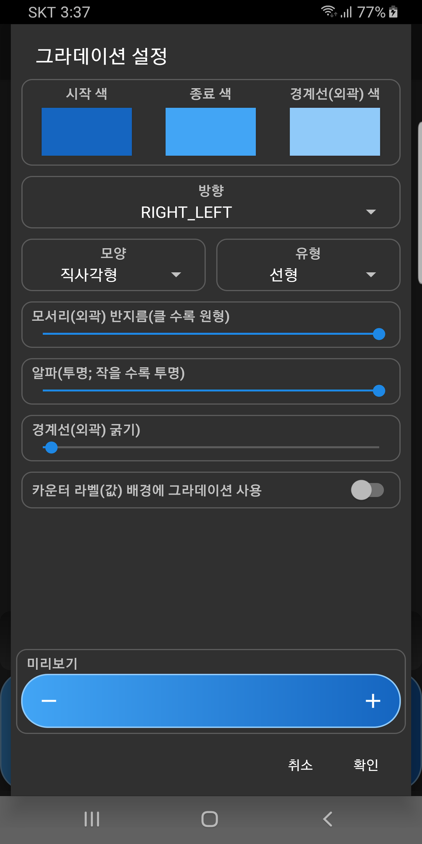 개별 카운터의 모양(색/모양/그라디언트/외곽선/투명 등)을 직접 디자인하고, 목푯값도 설정해보세요!