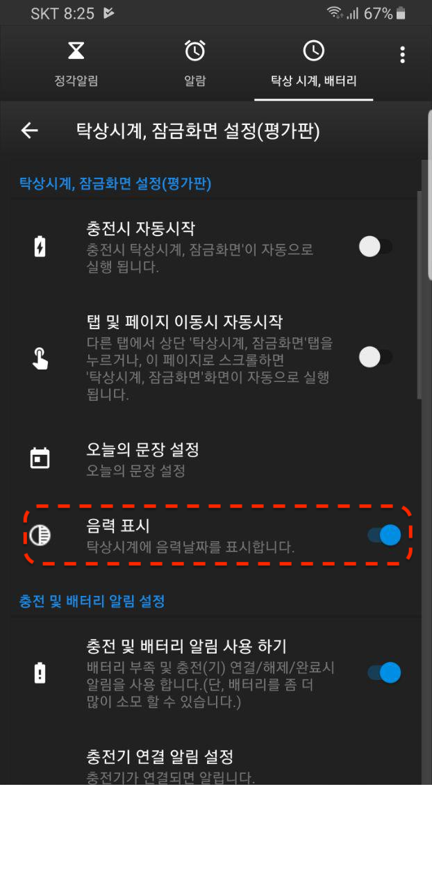 5.0.1 버전 부터 정각알림 시, 알람 시 음력 및 간지를 말 할 수 있는 옵션이 추가 되었습니다.