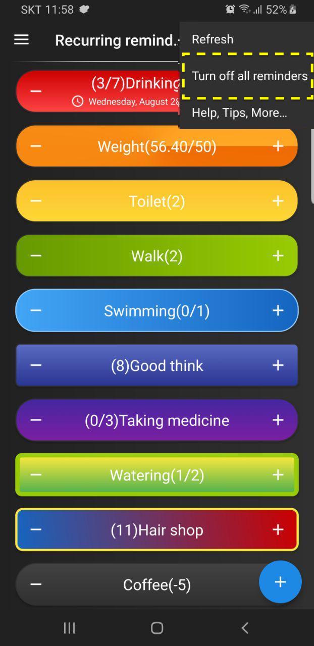 1.1 Or When you receive a Recurring reminder notification, tap the notification to go directly to the second screen below.