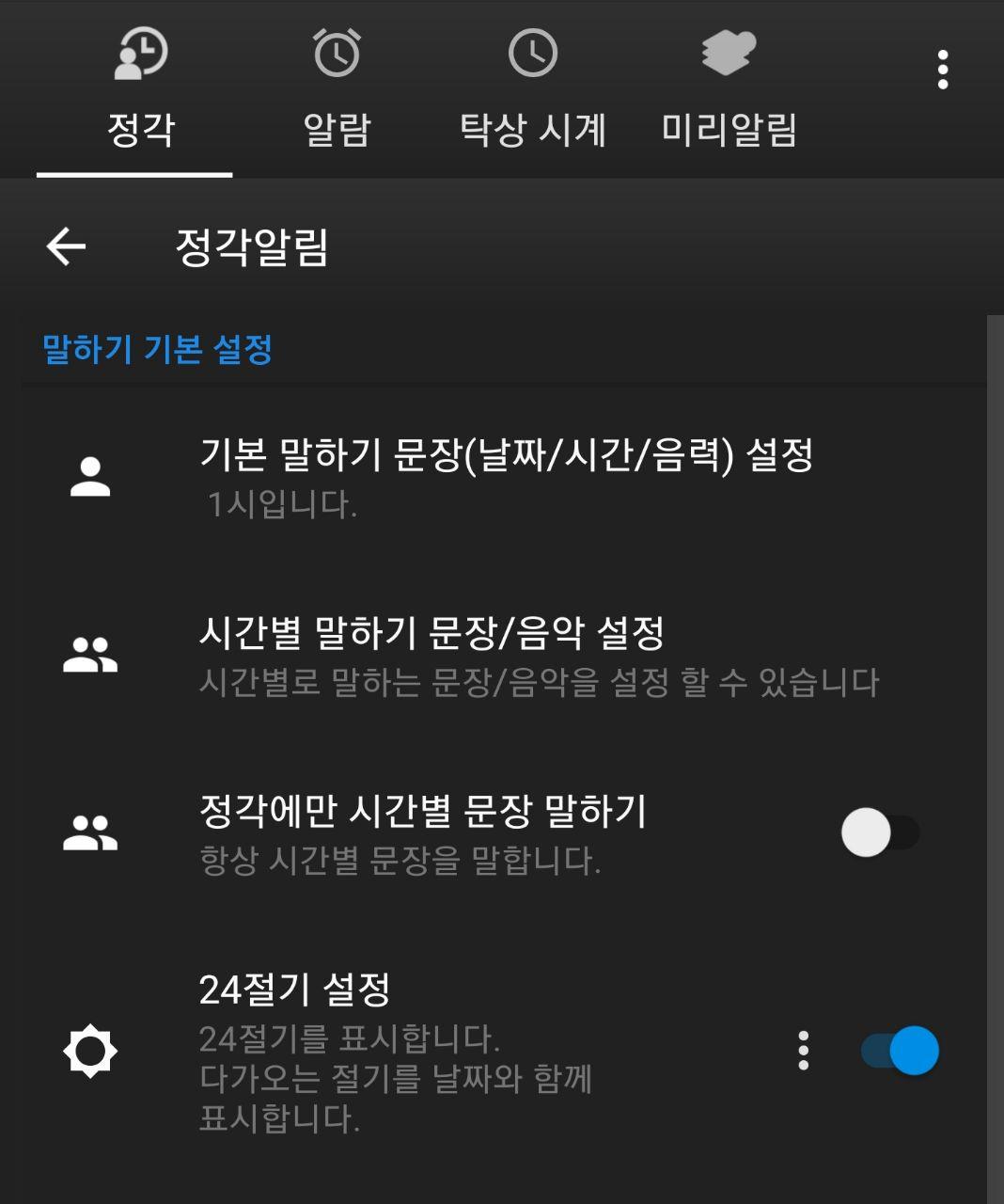 정각알림 > 고급 설정 > 말하기 기본 설정 > 24절기 설정
