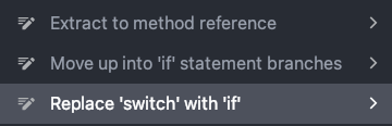 Replace switch with if 를 선택하면 한 방에 해결 된다.