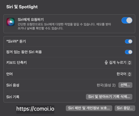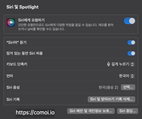 2. 시리 설정 여부