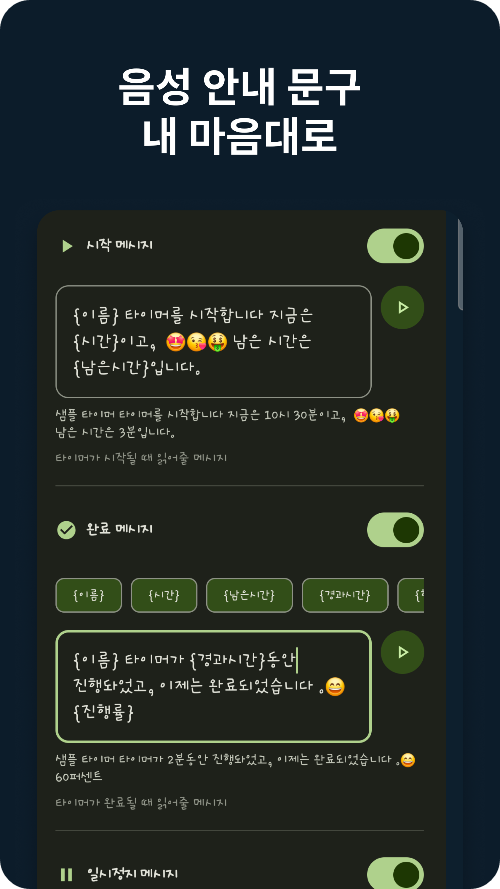 • 완료음, 음성 볼륨 크기 각각 다르게