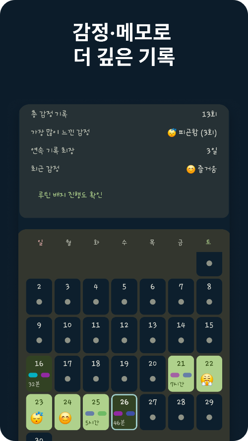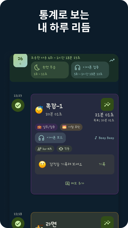 • 타이머를 쓸 때마다 감정·메모·루틴을 기록하고 싶었던 분