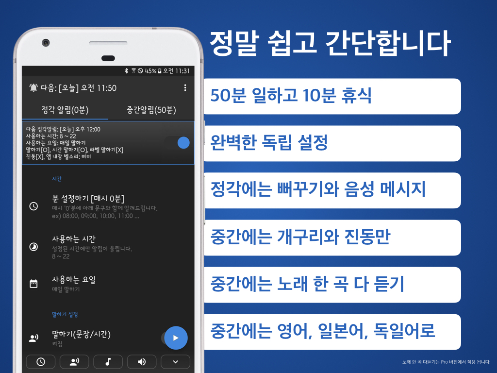 [정각알림 중간알람] 50분 일하고 10분 휴식할 때 유용한 알림